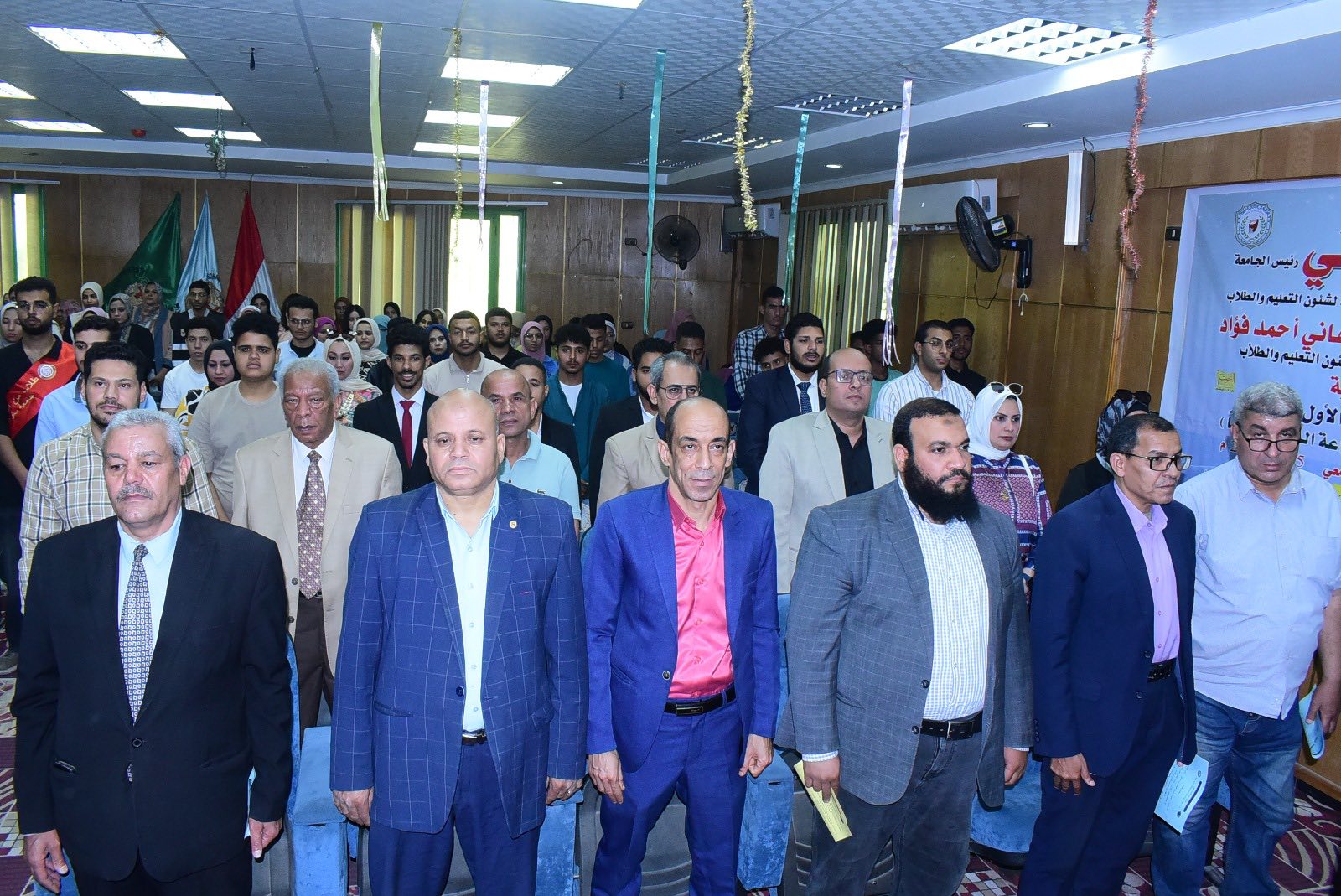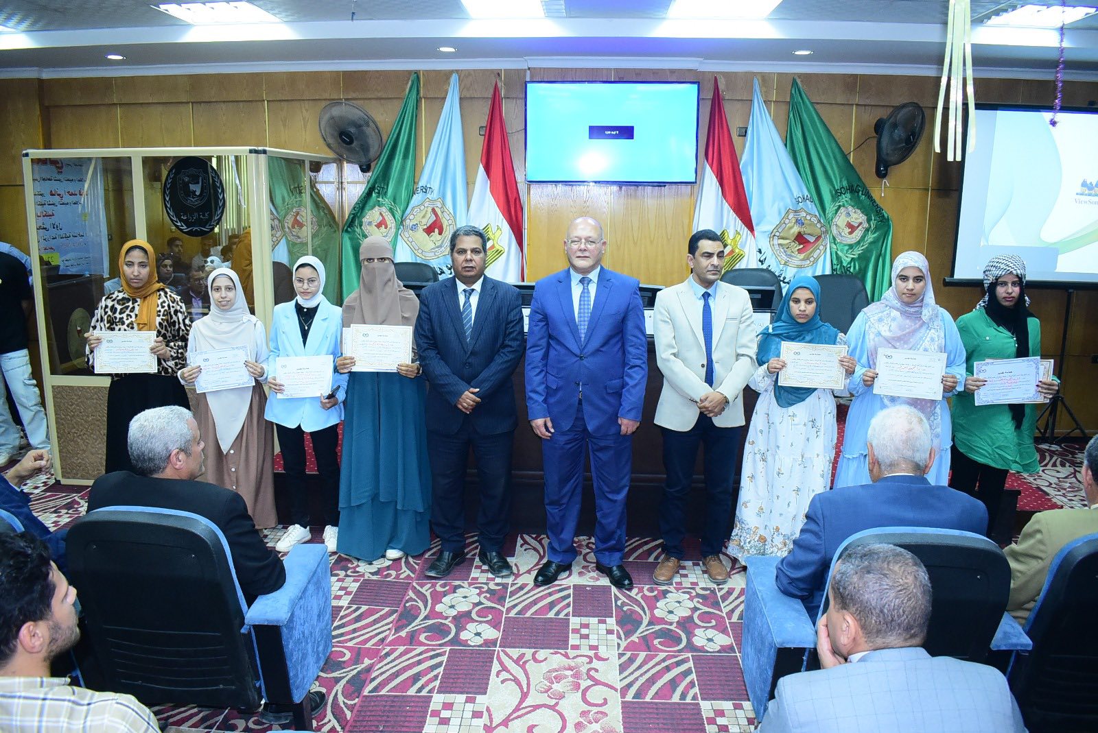 افتتح الدكتور حسان النعماني رئيس جامعة سوهاج فعاليات المؤتمر الطلابي البحثي الأول بكلية الزراعة، والذي انعقد في مقر الكلية برحاب الجامعة الجديدة تحت عنوان “مخرجات الإبداع والإبتكار وريادة الأعمال في الزراعة الذكية مناخيًا” وذلك بمشاركة أكثر من ٢٠٠ طالب وطالبة، قدّموا خلاله ٤٢ بحثًا طلابيًا متميزًا.