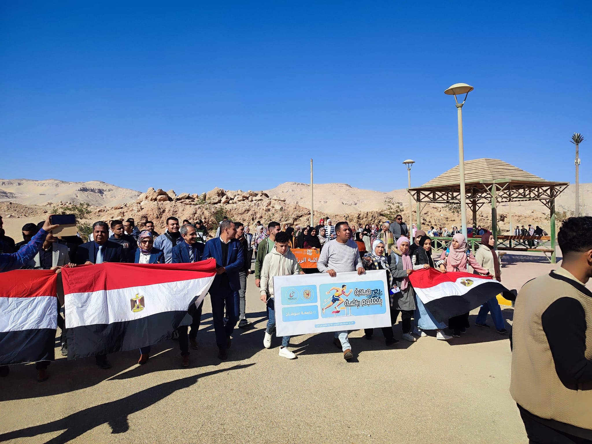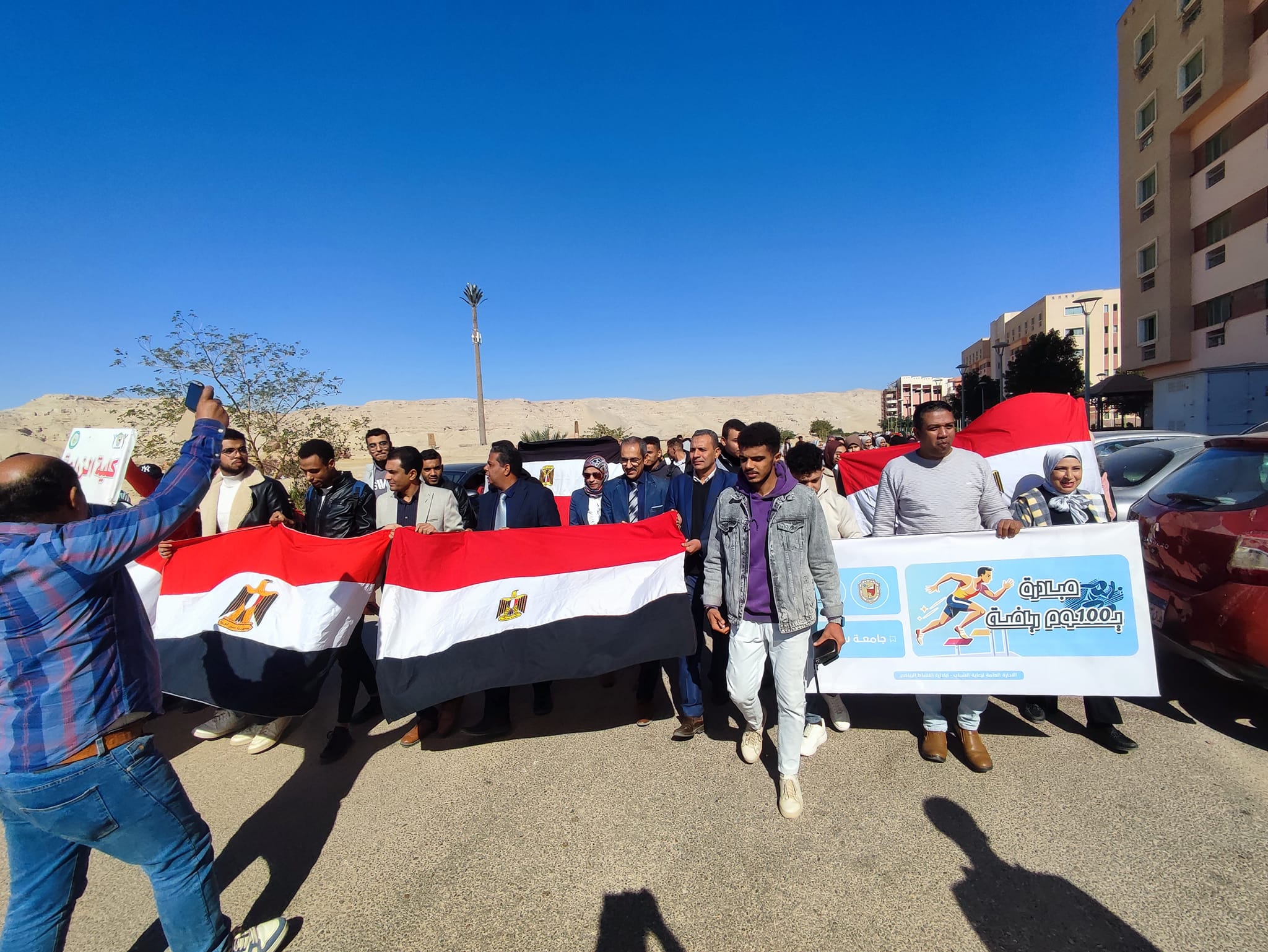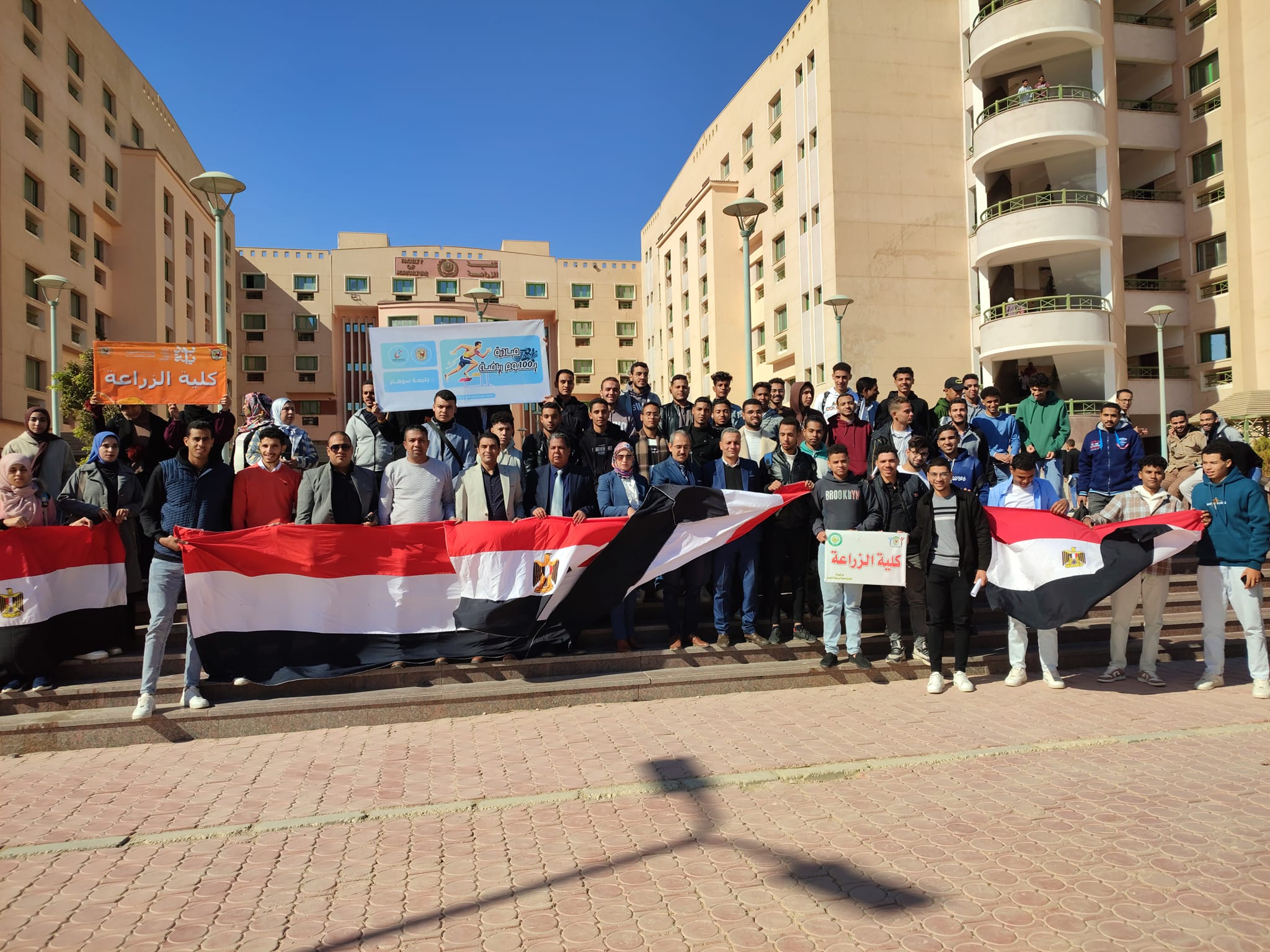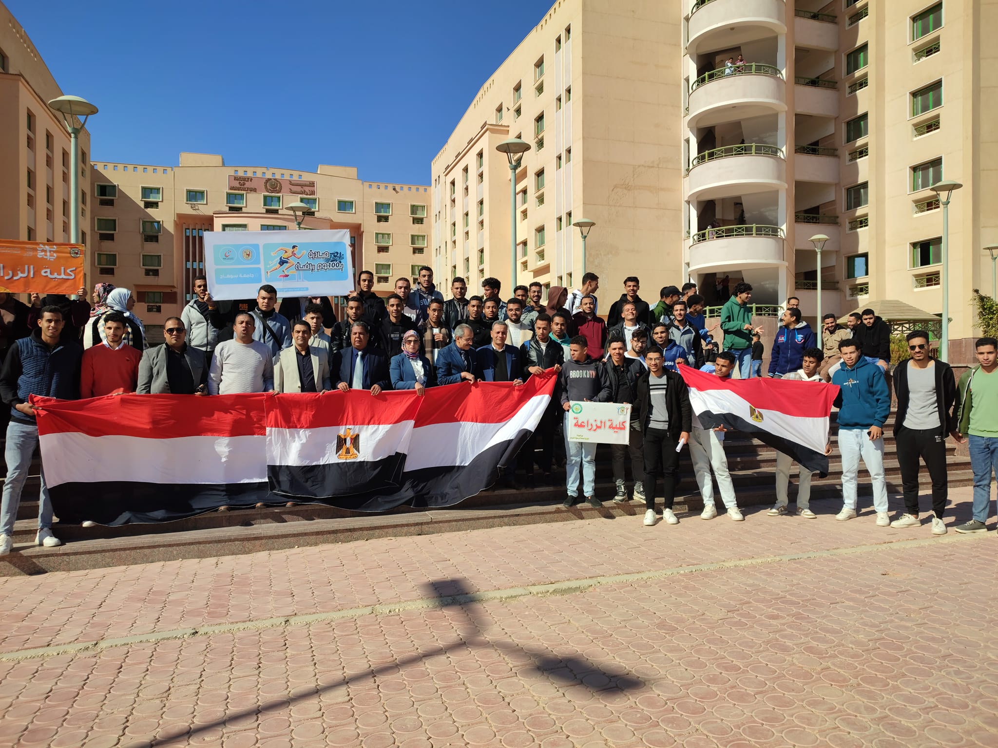 وذلك ضمن مبادرة 100 يوم رياضه ، استمرارا لاسبوع الأنشطة الرياضيه وضمن مبادرة 100يوم رياضه اقيمت اليوم مسيرة كليه الزراعه! ممثله في اعضاء هيئه تدريس وطلاب وطالبات والعاملين بالكليه.