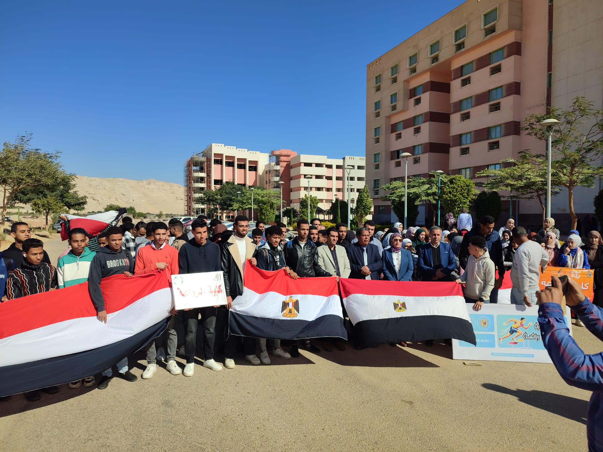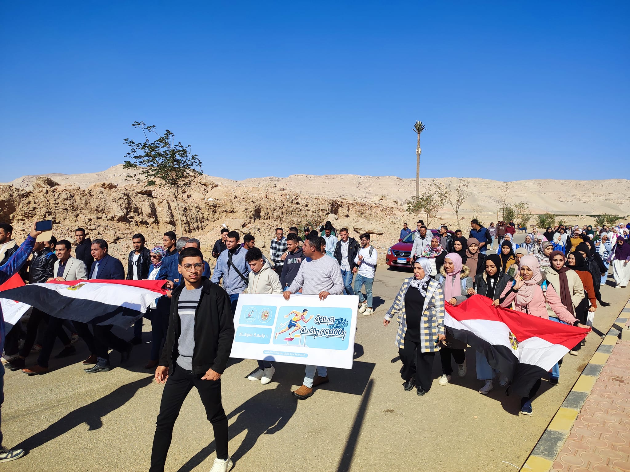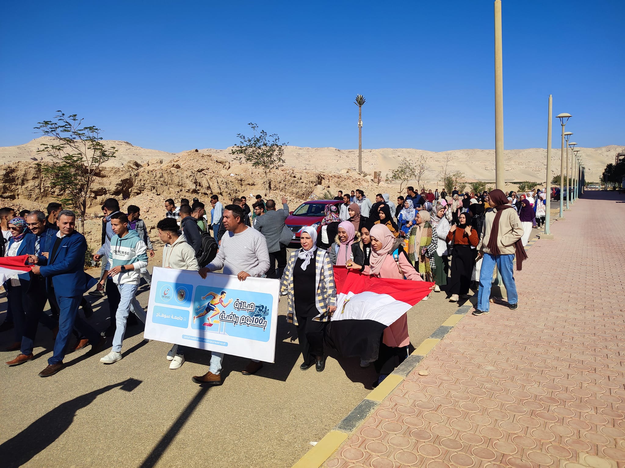 وذلك ضمن مبادرة 100 يوم رياضه ، استمرارا لاسبوع الأنشطة الرياضيه وضمن مبادرة 100يوم رياضه اقيمت اليوم مسيرة كليه الزراعه! ممثله في اعضاء هيئه تدريس وطلاب وطالبات والعاملين بالكليه.