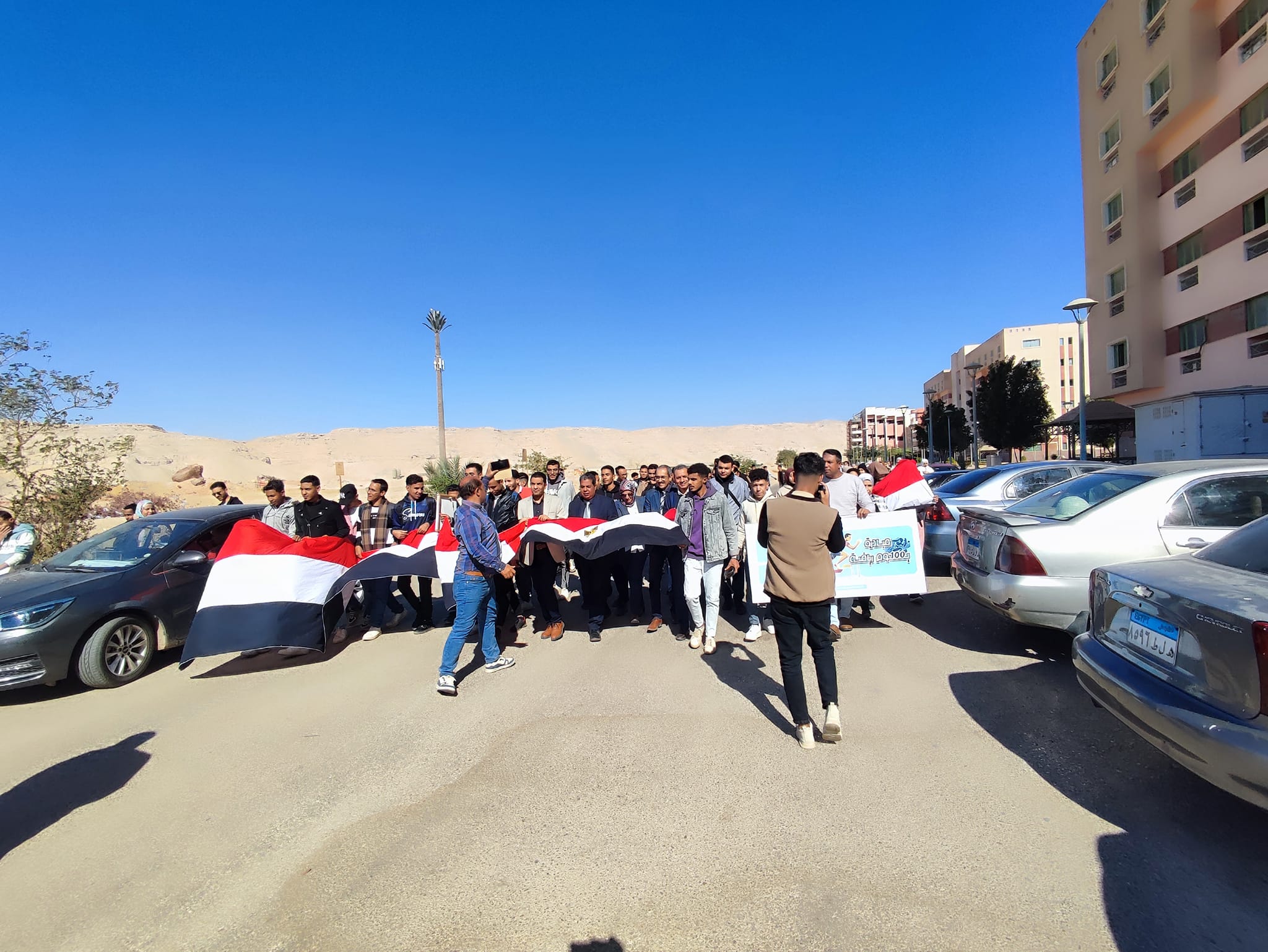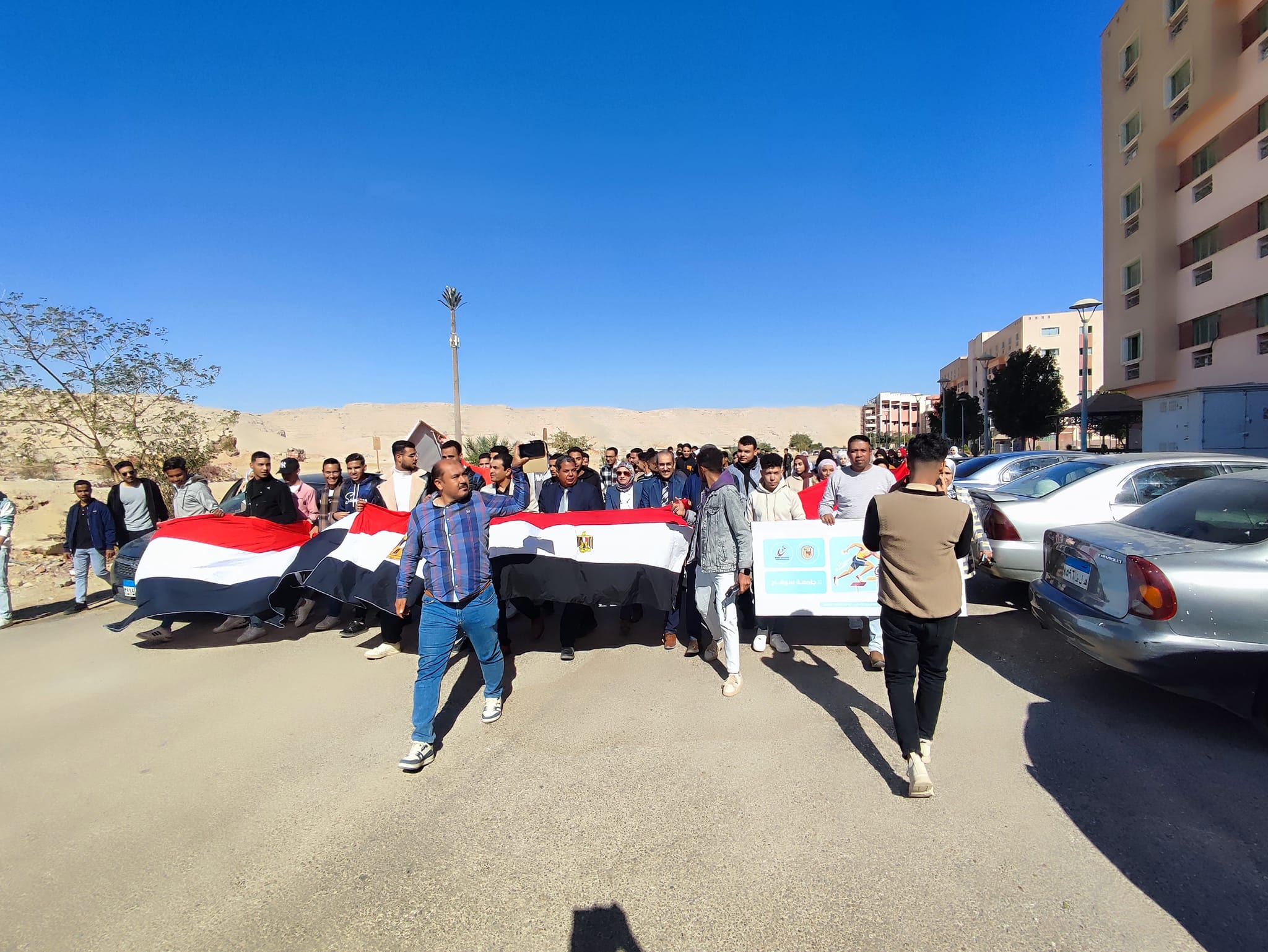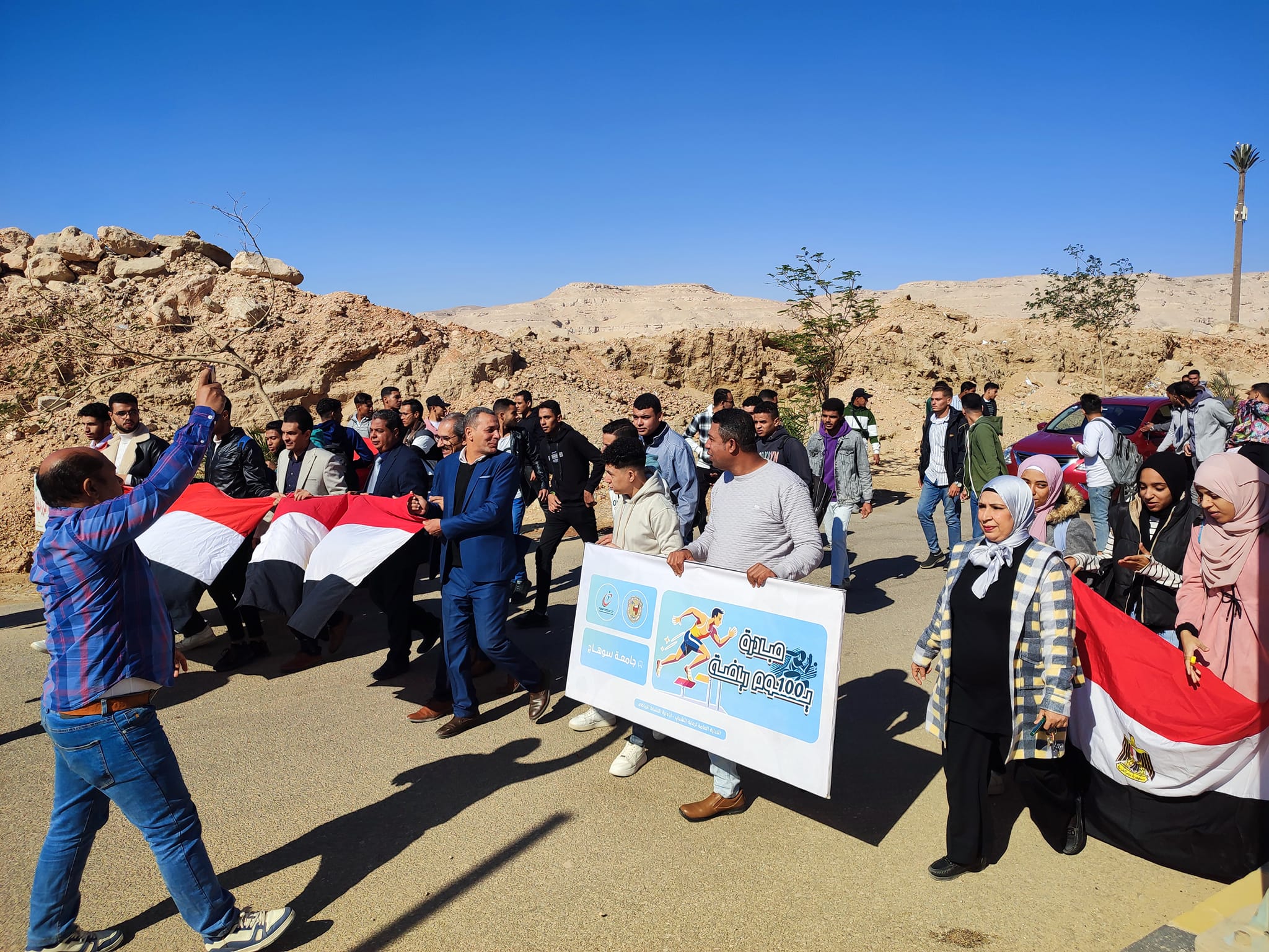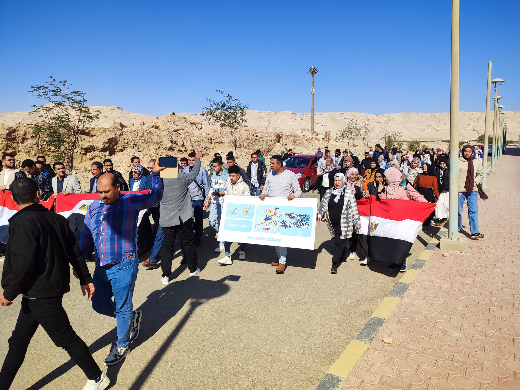 وذلك ضمن مبادرة 100 يوم رياضه ، استمرارا لاسبوع الأنشطة الرياضيه وضمن مبادرة 100يوم رياضه اقيمت اليوم مسيرة كليه الزراعه! ممثله في اعضاء هيئه تدريس وطلاب وطالبات والعاملين بالكليه.