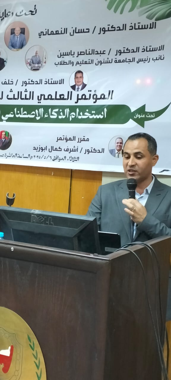 افتتح المؤتمر الدكتور عبد العليم سعد سليمان رئيس قسم وقاية النبات، واكد علي أهمية الذكاء الاصطناعي كأداة رئيسية تدخل في صلب جميع القطاعات، ليصبح جزءاً لا يتجزأ من حياتنا اليومية ويعد المؤتمر يعد فرصة كبيرة لتبادل الخبرات بين الطلاب والباحثين في سبل تطوير استخدام الذكاء الاصطناعي في مجال وقاية النبات، مما يتطلب تطوير المعامل الطلابية والبحثية والعمل على تطويرها باستمرار لمواكبة العصر و لتحقق رسالة القسم في البحث والتدريس وخدمة المجتمع كما اكد ربط خريج الزراعة بسوق العمل عن طريق تحديث المقررات والبرامج الدراسية وإدماج التكنولوجيا الحديثة والبرمجة والتحول الرقمى بالمناهج التعليمية، والتدريب العملي داخل المزارع والشركات الزراعية والمؤسسات البحثية.