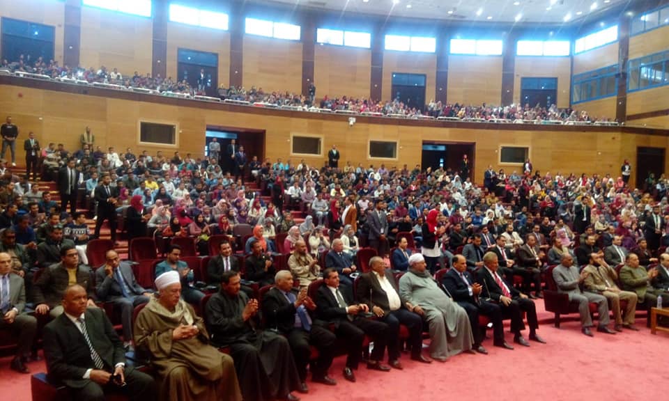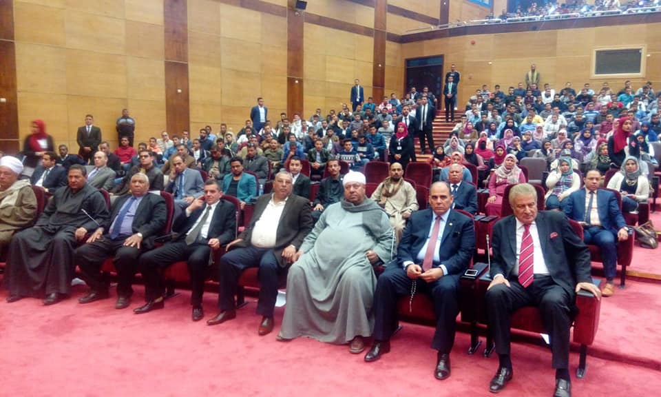 وأعرب الدكتور احمد عزيز رئيس الجامعة في بداية كلمته عن فخره واعتزازه بضيوف الندوة باعتبارهم من أبناء محافظة سوهاج، قائلاً أن الصعيد سوف يقود معركة التنمية في المرحلة القادمة، وخاصة أن العديد من القيادات المتميزة بالدولة هم من أبناء محافظات الصعيد، مشيراً إلى أن هذا المؤتمر يعد استكمالا لسلسلة المؤتمرات والندوات الثقافية والتوعوية التي تنظمها الجامعة لتنمية وعي الطلاب، مضيفاً أن مصر تمر بمرحلة مهمة سواء علي الجانب التشريعي او الاقتصادي أو علي صعيد العلاقات الدولية، وهذا يأتي تزامنا مع استعداد الجامعة هذا العام لتخريج الدفعة الأولى بكلية الحقوق، متمنياً تقديم جيل جديد من القضاه والمحامين المتميزين الذين يساهموا بشكل إيجابي في تنفيذ العدالة والقانون ودعم الدولة المصرية.