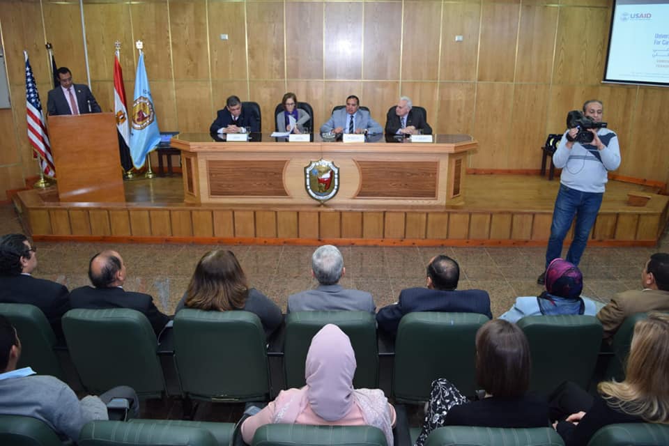 وقال رئيس الجامعة الامريكية بالقاهرة فرانسيس ريتشياردوني، نحن سعداء ببدء شراكتنا الجديدة مع جامعة سوهاج في مشروع يقوم حاليا بتمكين الطلبة في المراكز الجامعية من الإسكندرية لسوهاج. وفي النهاية، سيكون للمراكز الجامعية للتطوير المهني في الجامعات الحكومية من شمال النيل الي جنوبه تأثير إيجابي على الاقتصاد المصري عن طريق بناء جسور التواصل بين قطاع الأعمال والصناعة مع الموظفين المستقبليين من طلبة جامعات مصر الواعدين. وتحتفل الجامعة الأمريكية بالقاهرة هذا العام بمائة عام في خدمة المجتمع المصري. أود أن أشكر الشعب الأمريكي لدعمه للشعب المصري ولهذه لمراكز الجامعية للتطوير المهني من خلال الوكالة الأمريكية للتنمية الدولية.