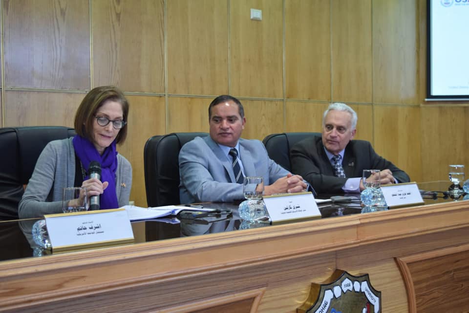 افتتح اليوم الدكتور احمد عزيز رئيس جامعة سوهاج وشيري كارلين مدير الوكالة الأمريكية للتنمية الدولية و فرانسيس ريتشياردوني رئيس الجامعة الامريكية بالقاهرة، ودكتور أشرف حاتم مستشار الجامعة الأمريكية بالقاهرة، المركز الجامعي للتطوير المهني.