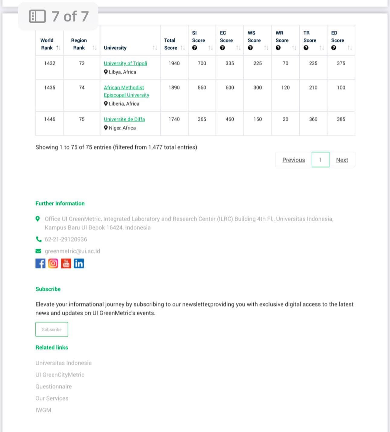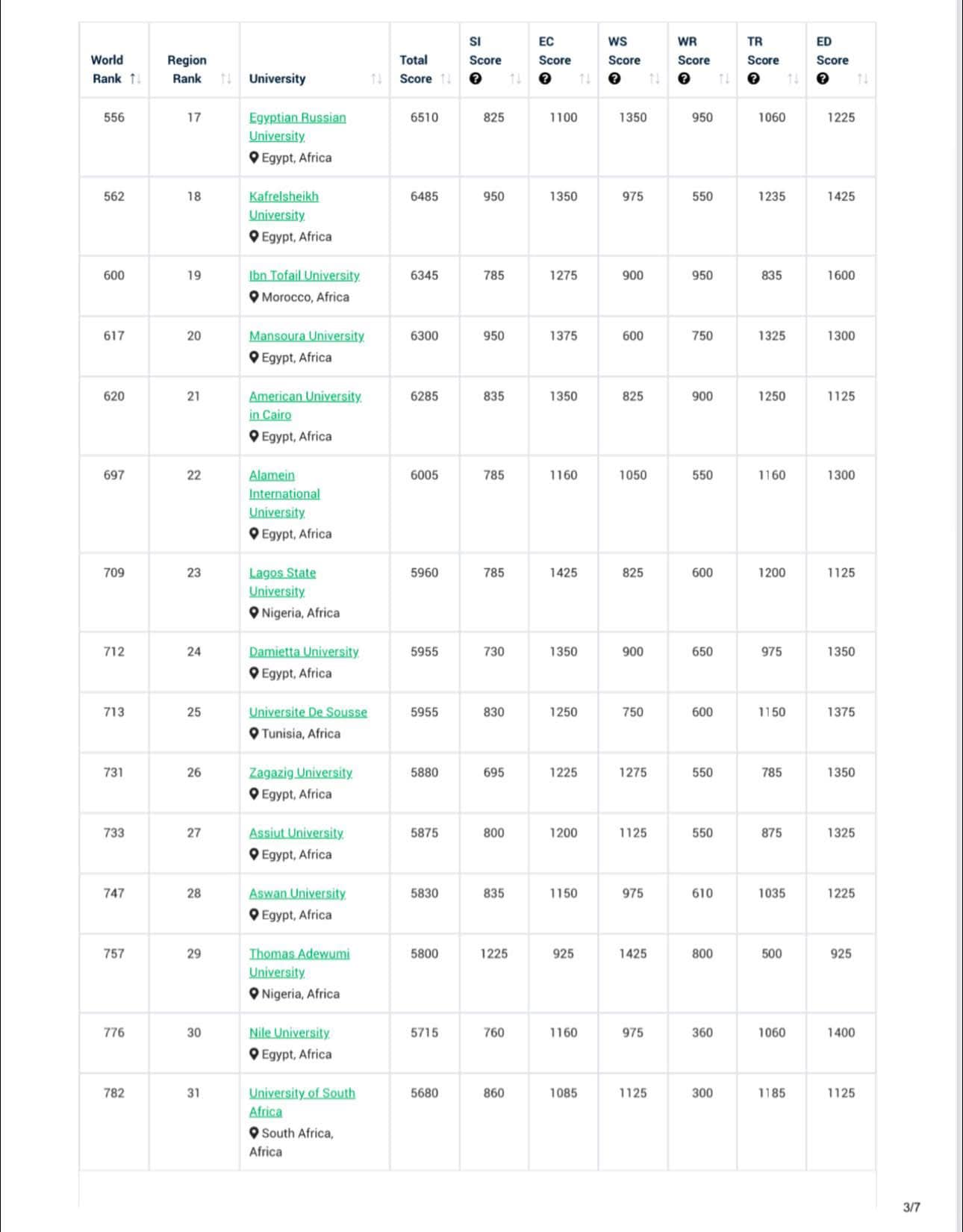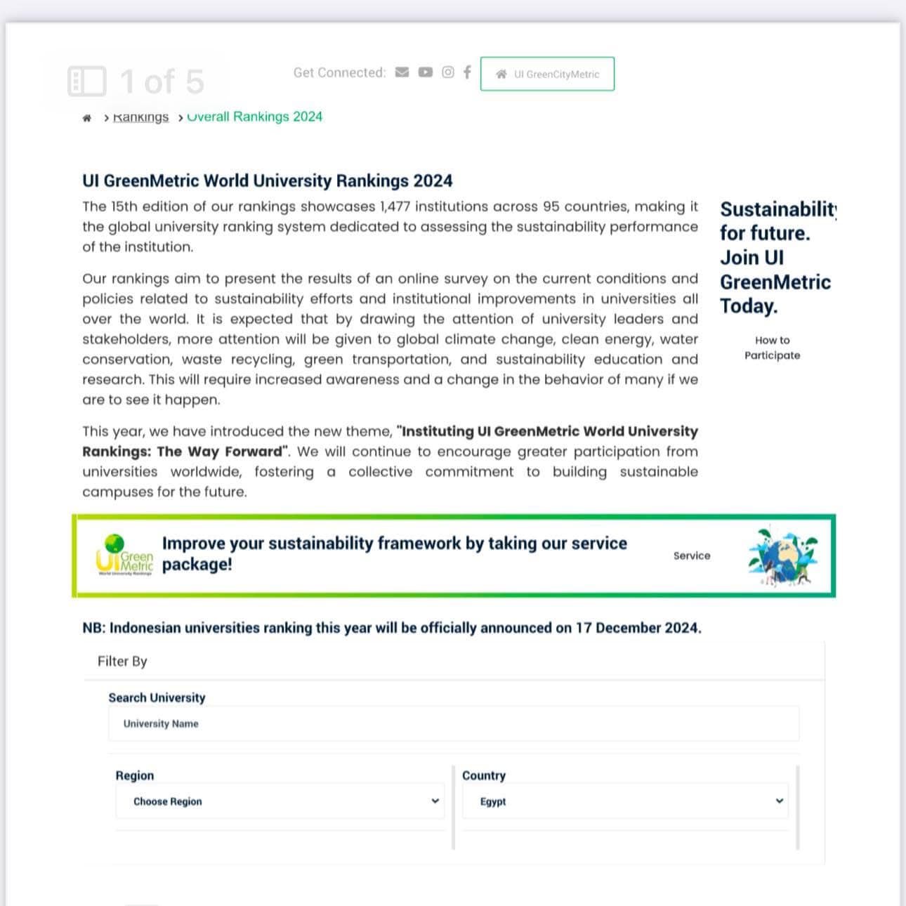 وذكر الدكتور حمدي حسانين مدير مركز التنمية المستدامة ومنسق عام ملف الجامعة للتصنيف الدولي بأن هذه هى المرة الخامسة لمشاركة الجامعة في هذا التصنيف وقد تراوحت نتائجنا في الاعوام الاربعة الماضية بين المركز الخامس مرتين والثامن مرتين، ثم هذا العام للمركز الأول رغم زيادة عدد الجامعات المشاركة الى ٣٦ جامعة مصرية و٧٥ جامعة أفريقية، وذلك نتيجة دعم إدارة الجامعة اللامحدود لفريق العمل الذي بذل جهوداً مضنية في إعداد وترتيب الملفات المطلوبة لهذا التصنيف..