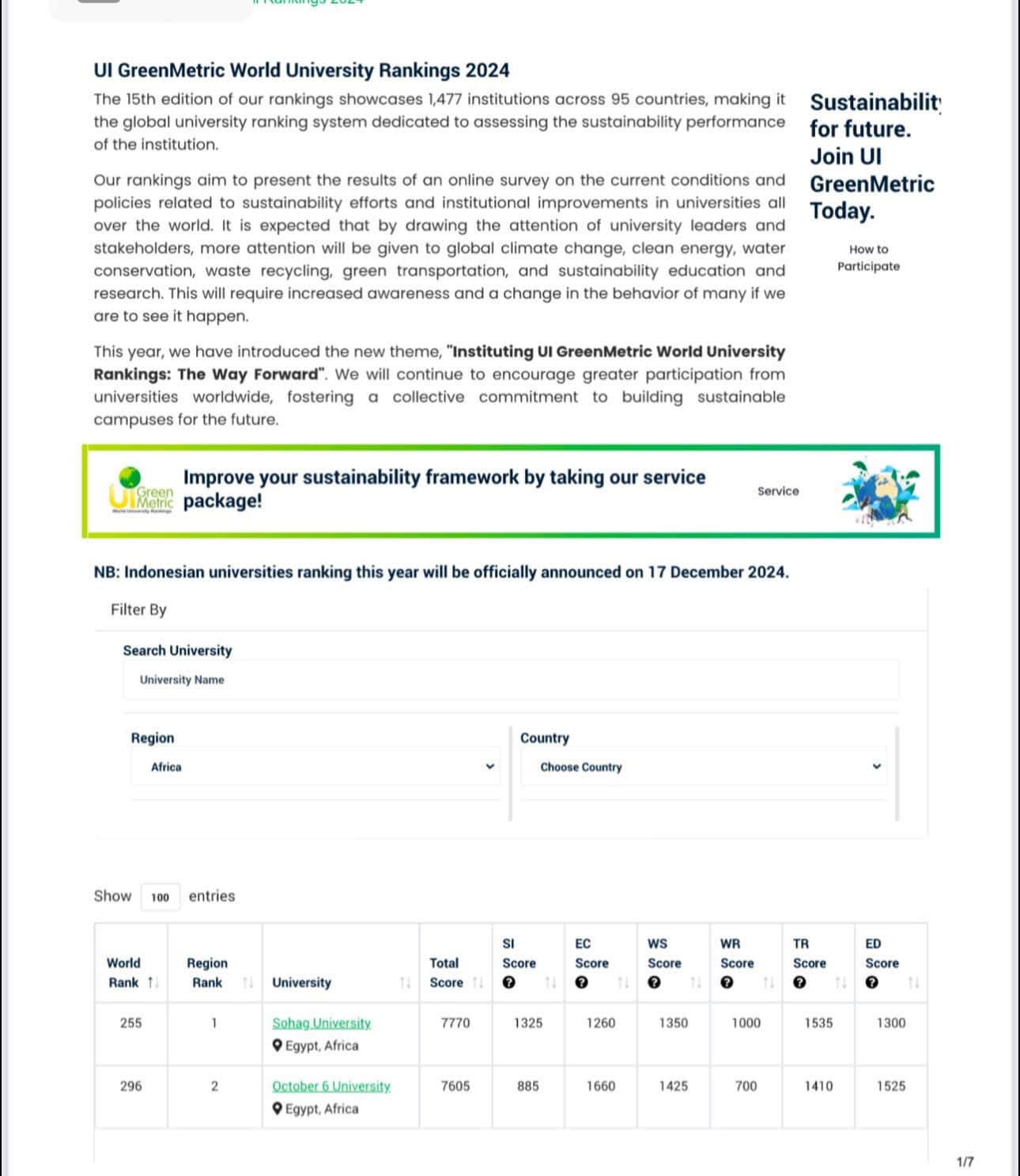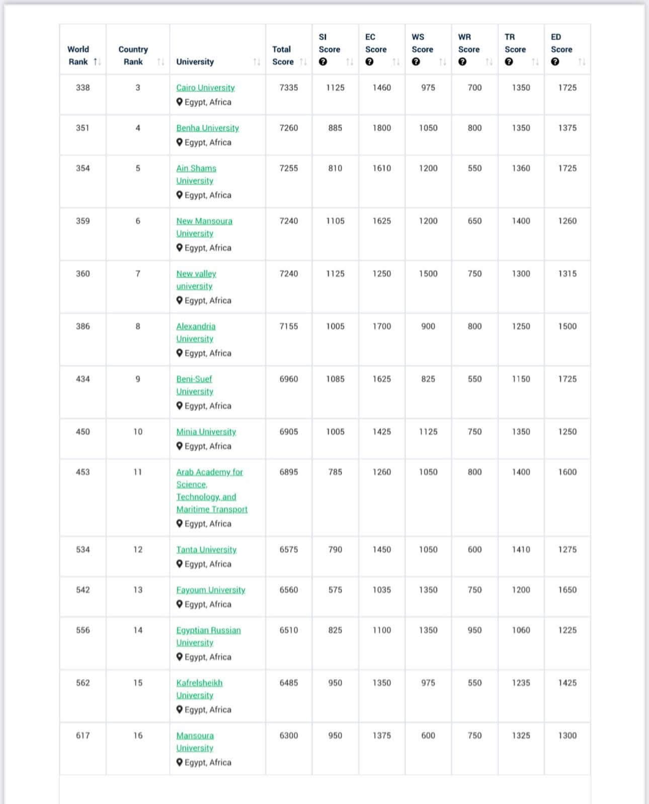 جامعة سوهاج تحصد المركز الأول علي مستوي الجامعات الأفريقية والمصرية في التصنيف الدولي للجامعات المستدامة “جرين ميتركس”