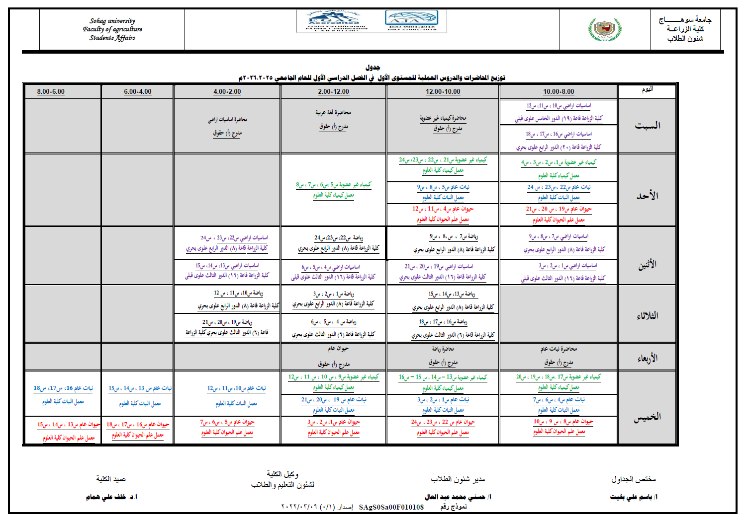 الرئيسية » Blog » جدول توزيع المحاضرات و الدروس العملية للمستوى الاول فى الفصل الدراسى الاول للعام الجامعى 2025 / 2026 مجدول توزيع المحاضرات و الدروس العملية للمستوى الاول فى الفصل الدراسى الاول للعام الجامعى 2025 / 2026 مبواسطة على احمد فرغل16 سبتمبر, 202516 سبتمبر, 2025 جدول توزيع المحاضرات و الدروس العملية للمستوى الاول فى الفصل الدراسى الاول للعام الجامعى 2025 / 2026م اضغط هنا للتحميل