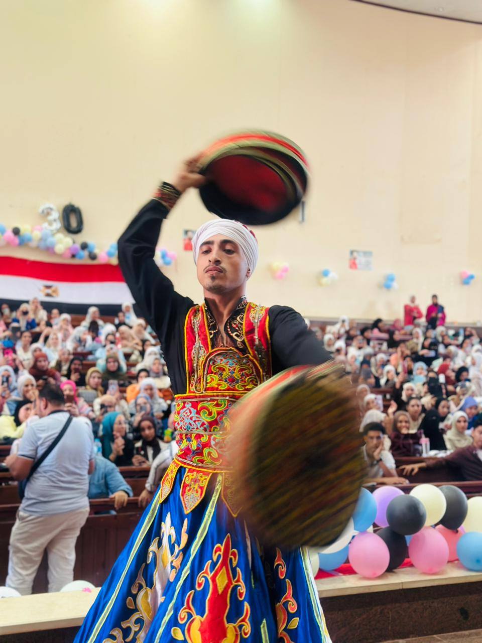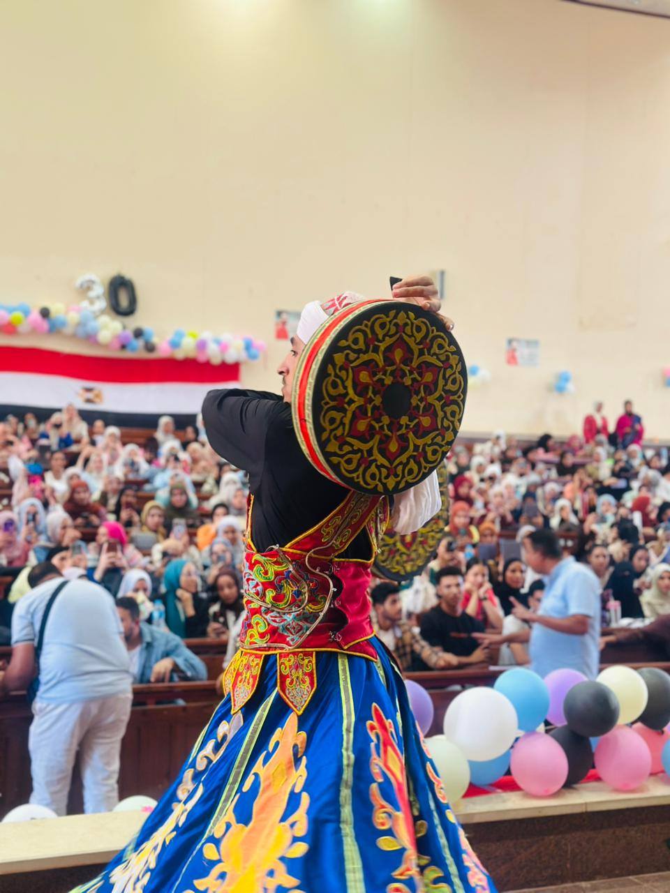 وافاد السيد الاستاذ الدكتور /خلف همام – عميد الكلية بان اشتملت فقرات الحفل على السلام الوطني لجمهورية مصر العربية وبدء الحفل بالقران الكريم ثم فقرة شعر وفقرة انشاد ديني ثم فقرة التنورة تلها فقرة غناء ثم فقرة الصعيدي وتم ختام الحفل بفقرة مسابقة ترفيهية