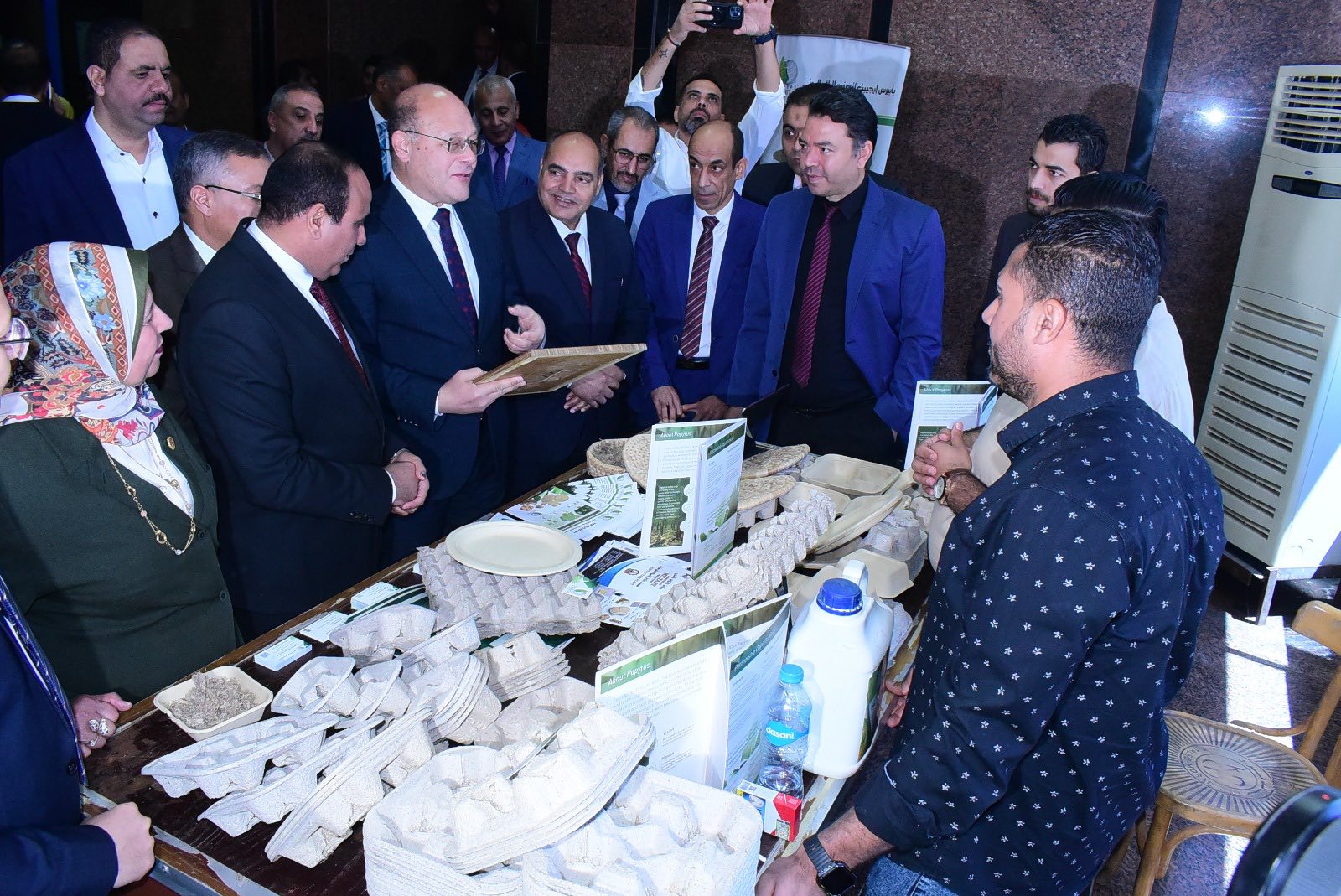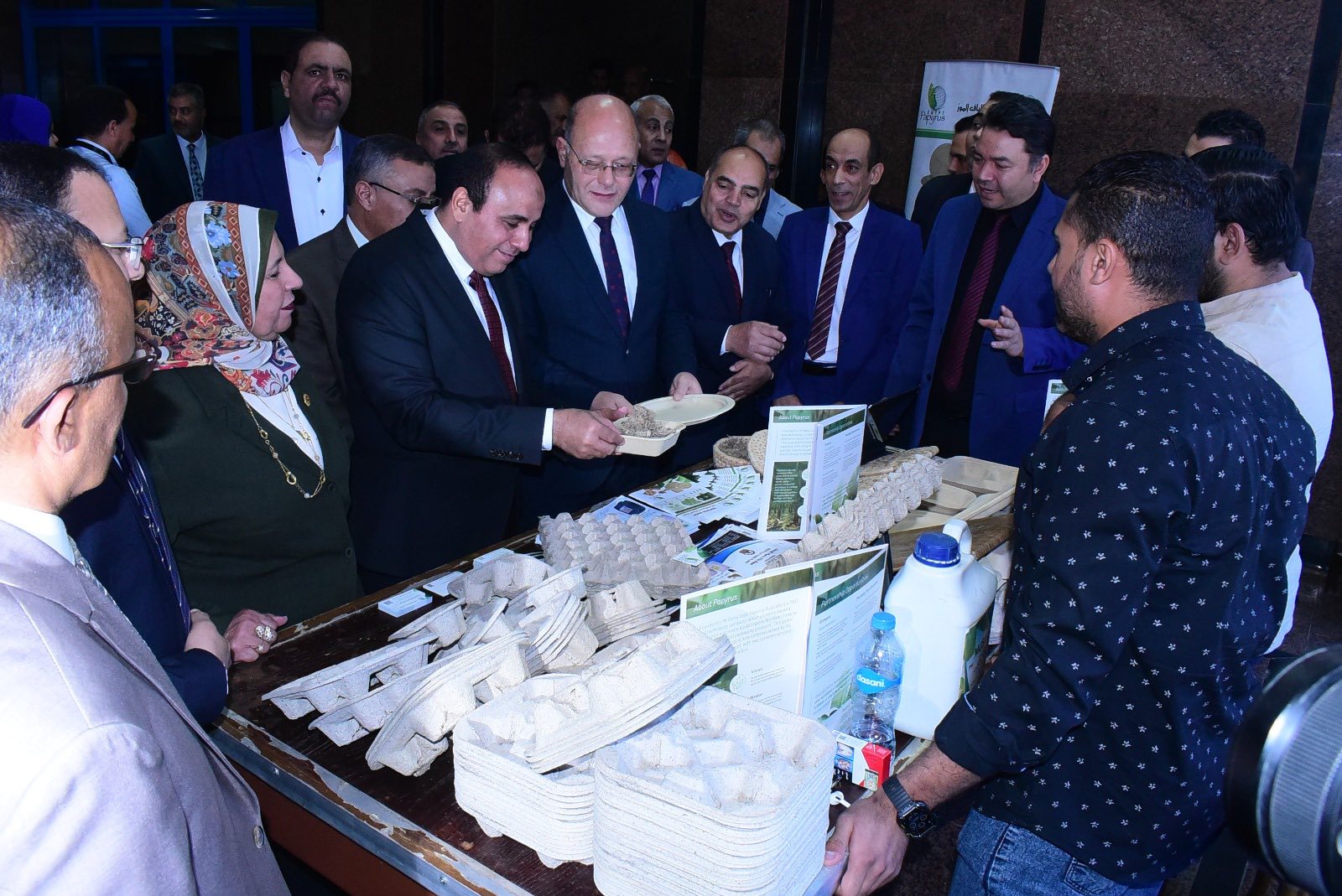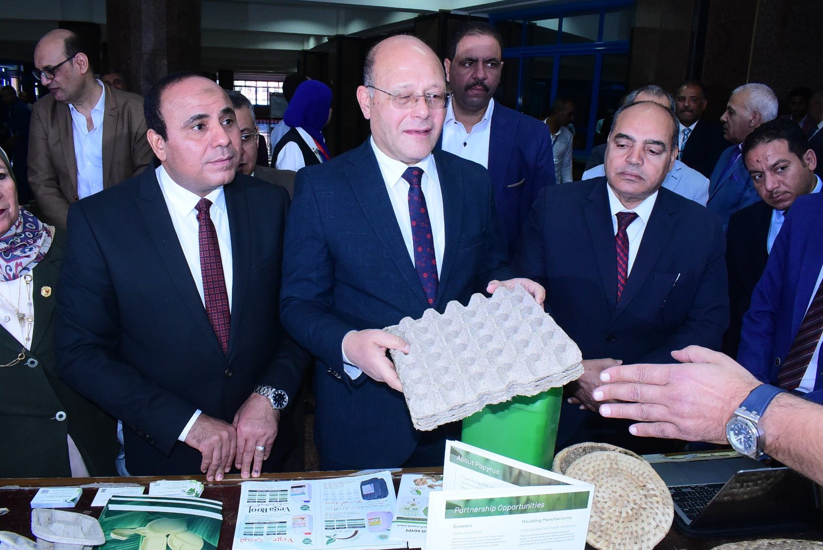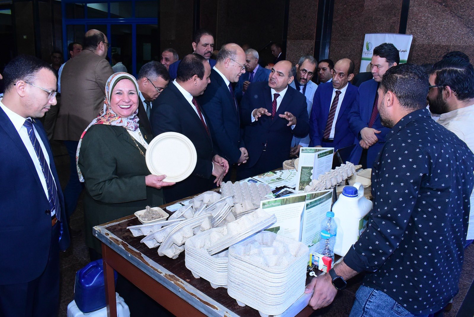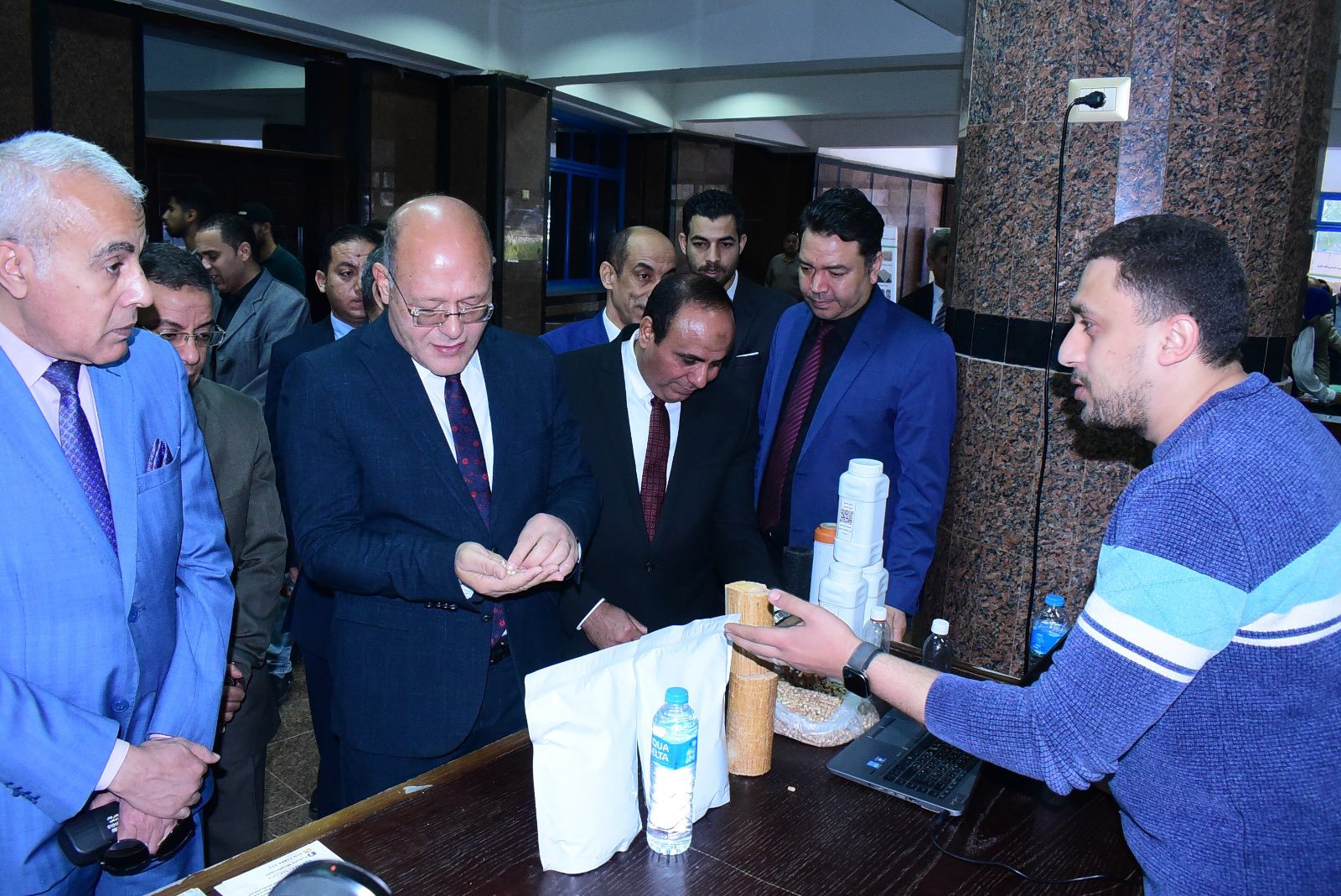 رئيس جامعة سوهاج يتفقد معرض لمنتجات صديقة البيئة يضم فحم نباتي وتصنيع ألياف الموز على هامش فعاليات المؤتمر البيئي الدولي الثالث