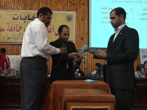 ومن جانبه قال الدكتور صفا محمود السيد نائب رئيس الجامعة لشئون التعليم والطلاب، أن اليوم كانت المرحلة الأخيرة من الانتخابات الطلابية، مشيراً الى أن كل المراحل تمت بشفافية وحياد تام، وفي السياق نفسه أكد الدكتور صفا أن جميع الطلاب سواسية أم ادارة الجامعة، حيث طالبهم بإختيار رئيساً لهم يتمتع بسمات القيادة.