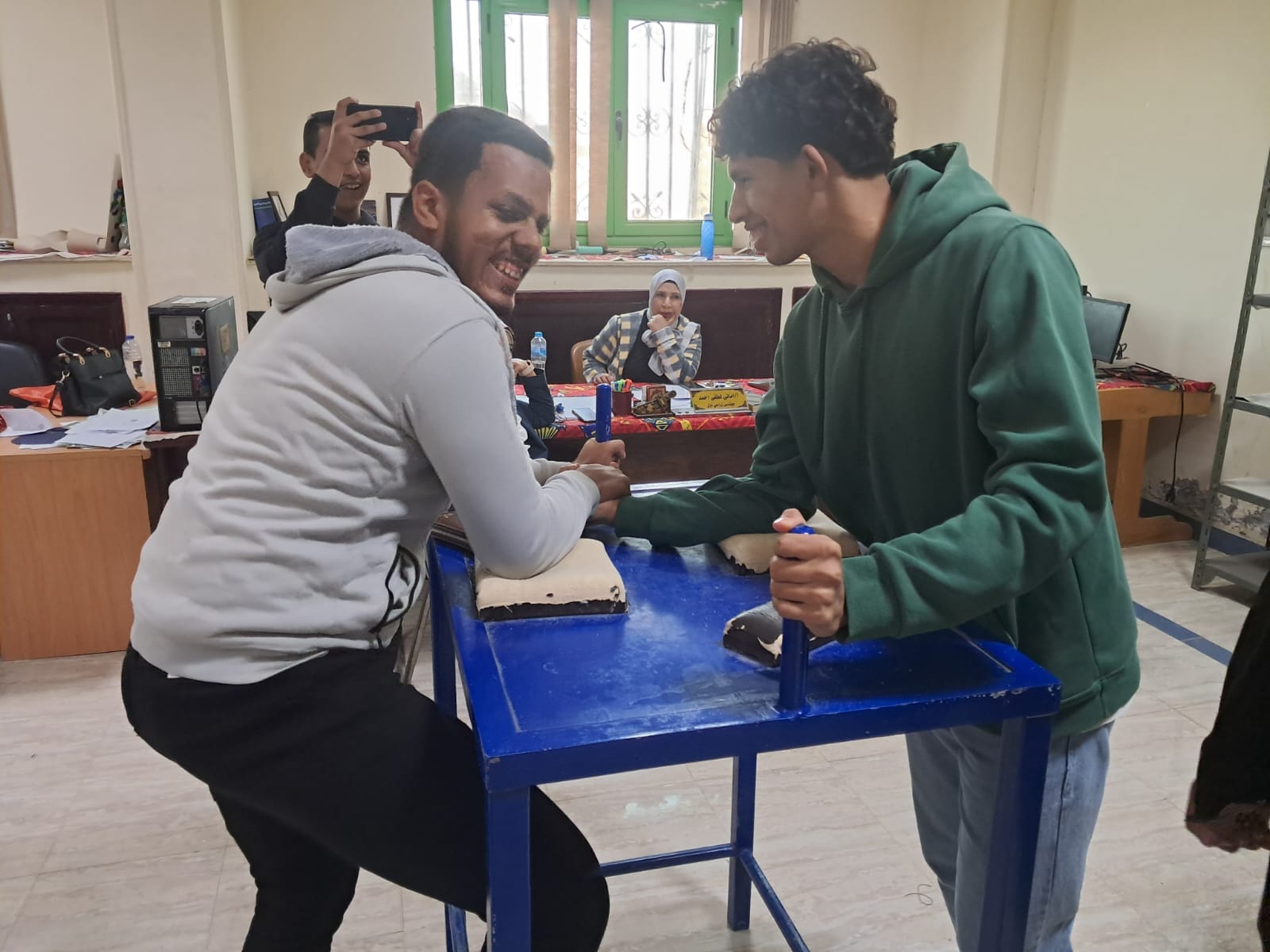وذلك ضمن مبادرة 100 يوم رياضه بدات فاعليات اسبوع كله انشطه وحيويه حيث اقيمت مسابقه الكليه في قوة الذراعين طلبه وطالبات للعام الجامعي2024/2025م