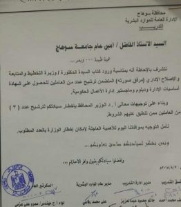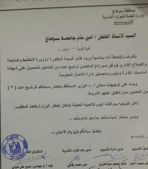 فتح باب الترشيح للعاملين بجامعة سوهاج للحصول علي دبلوم ادارة الاعمال