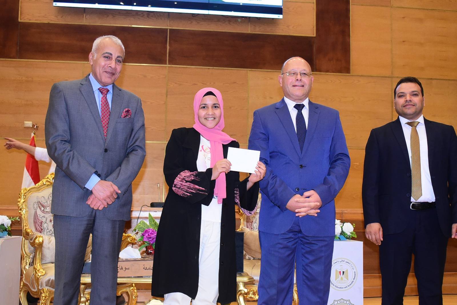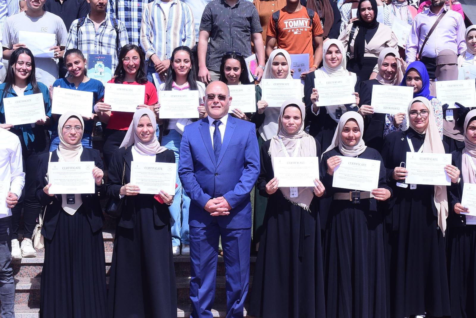 و ذكر معتز عيد منسق الوحدة ان رئيس الجامعة كرم نخبة من المدربين المشاركين باليرنامج تقديراً لجهودهم، وتم اجراء سحب علي ٢٠ جائزة مالية بقيمة ٥٠٠ جنيه لكل فائز من الطلاب المشاركين في البرنامج.