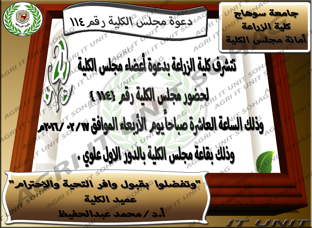 دعوة مجلس الكلية رقم 114 بتاريخ 17 / 02 / 2016م.