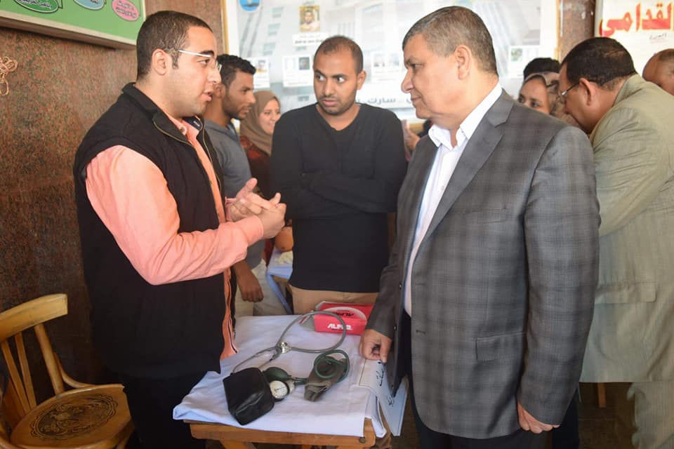 تفقد د. صفا محمود نائب رئيس جامعة سوهاج لشئون التعليم والطلاب فعاليات اليوم الاول من خيمة الاسعافات الأولية التى تنظمها كلية التمريض علي مدار يومين، أمام مبني كلية الزراعة بمقر الجامعة بمدينه سوهاج الجديدة، صاحبه في الجولة د. سامية السعيد عميد كلية التمريض ود. محمد عبد الحفيظ عميد كلية الزراعة .