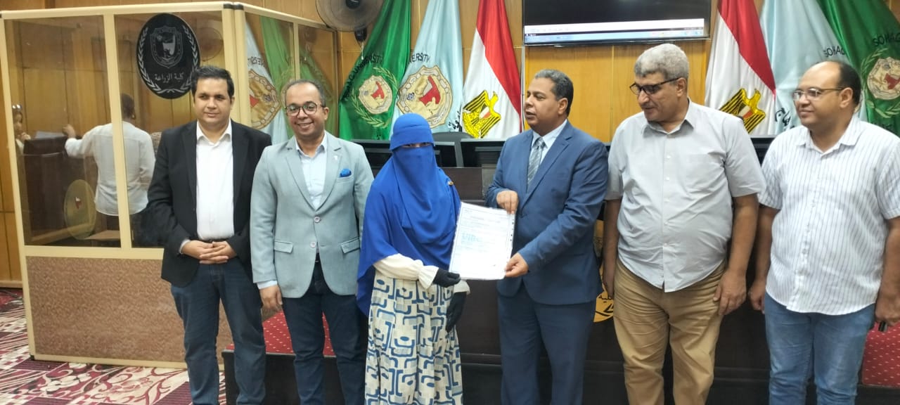 وبحضور الاستاذ الدكتور/ خلف همام عميد كليه الزراعه بجامعه سوهاج والاستاذ الدكتور/زينهم شيخون وكيل الكليه لشؤون البيئه وتنميه المجتمع والاستاذ الدكتور/ طارق الشاروني رئيس قسم الميكروبيولوجي تم اليوم الاثنين الموافق ٢٠٢٥/٩/٢٨ تكريم طلاب بالمستوى الرابع بقسم الميكروبيولوجي بعد نهاية تدريب مكثف بشركة الترابيوتك – حيث تم ترشيحهم من خلال القسم في ضوء التعاون بين قسم الميكروبيولوجي ورابطة المهندسين الزراعيين بسوهاج ورعاية شركه الترابيوتك ويأتي ذلك ضمن سياسه الكلية ورؤية قسم الميكروبيولوجيا الزراعية لتأهيل الشباب لسوق العمل بعد سنوات الدراسه الجامعيه وصقل مهاراتهم الشخصيه والمهنية التي تفتح لهم ابواب النجاح .