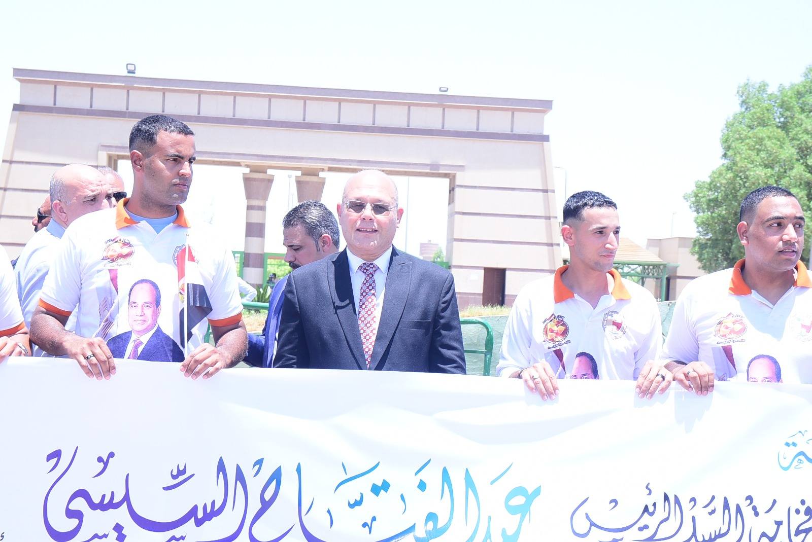 وانطلقت المسيرة من أمام مبنى المركز الدولي للمؤتمرات بمقر الجامعة الجديد، وصولاً إلى البوابه الرئيسيه، في أجواء حماسية تخللتها الأغاني الوطنية والهتافات الداعمة للدوله المصرية، حيث اصطفت المسيرة، والقي رئيس الجامعة كلمته أمام جموع الطلاب احتفالا بذكري هذا اليوم المجيد.