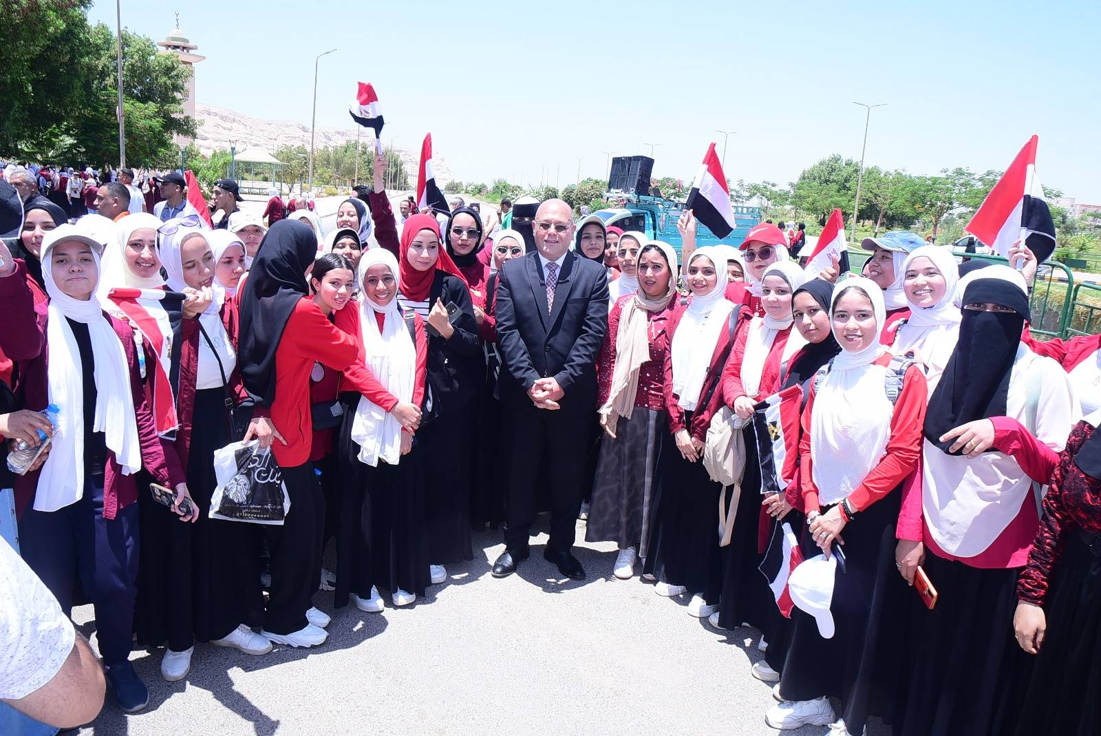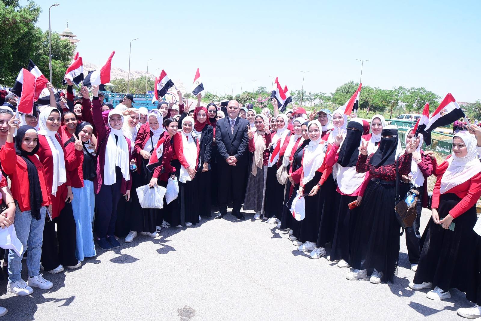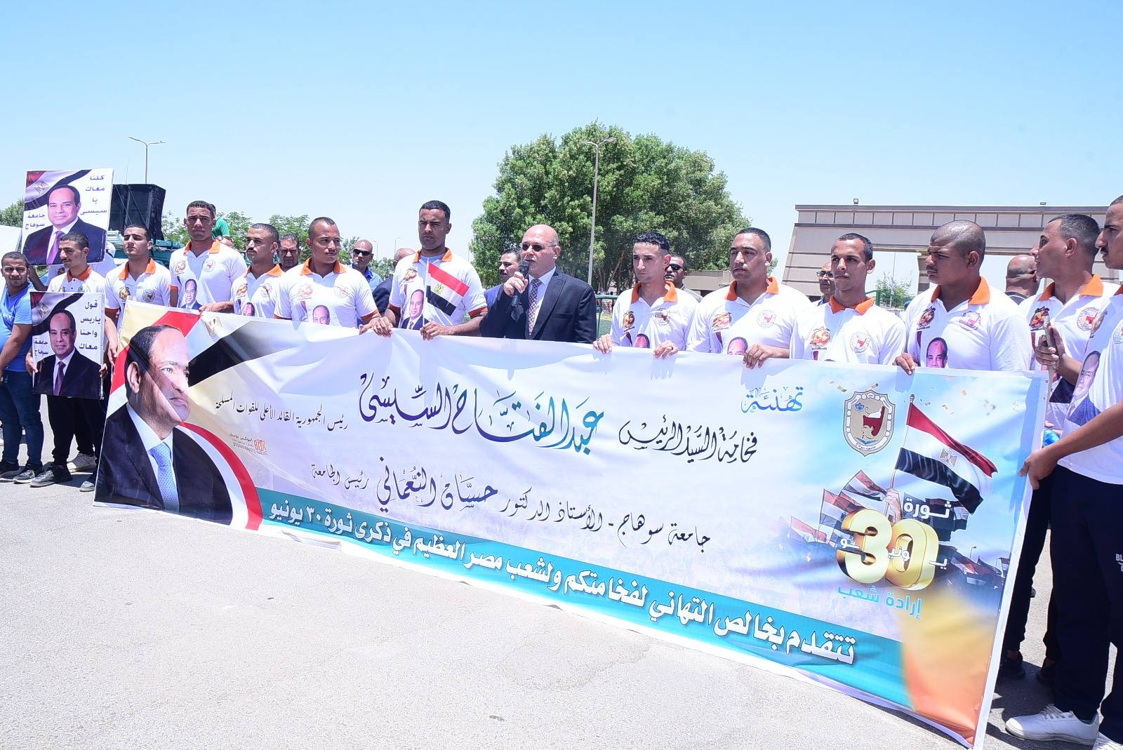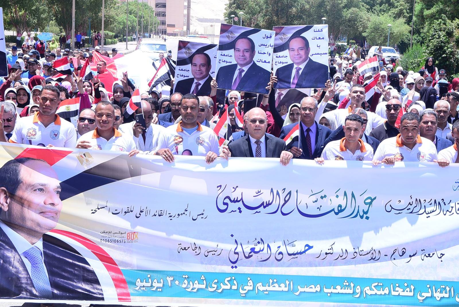 اجتمع شباب جامعة سوهاج في مسيرة ضخمها يقودها الدكتور حسان النعماني رئيس الجامعة جسدوا فيها عزيمة الشعب المصري الأبي..مستلهمين روح ثورة 30 يونيو المجيدة، بمشاركة نواب رئيس الجامعة وعمداء الكليات والعاملين والطلاب من مختلف الكليات.