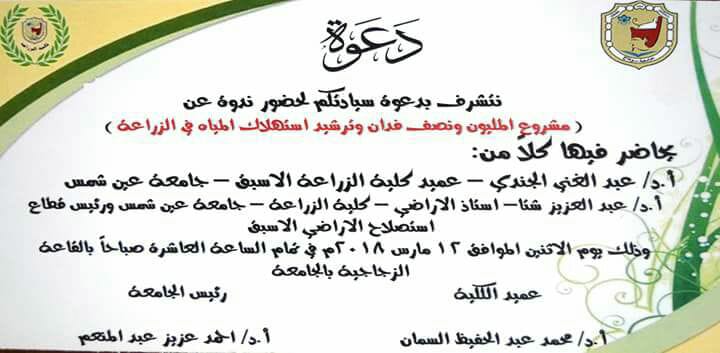 ندوة بجامعة سوهاج عن ” مشروع المليون ونصف فدان وترشيد استهلاك المياه في الزراعة”