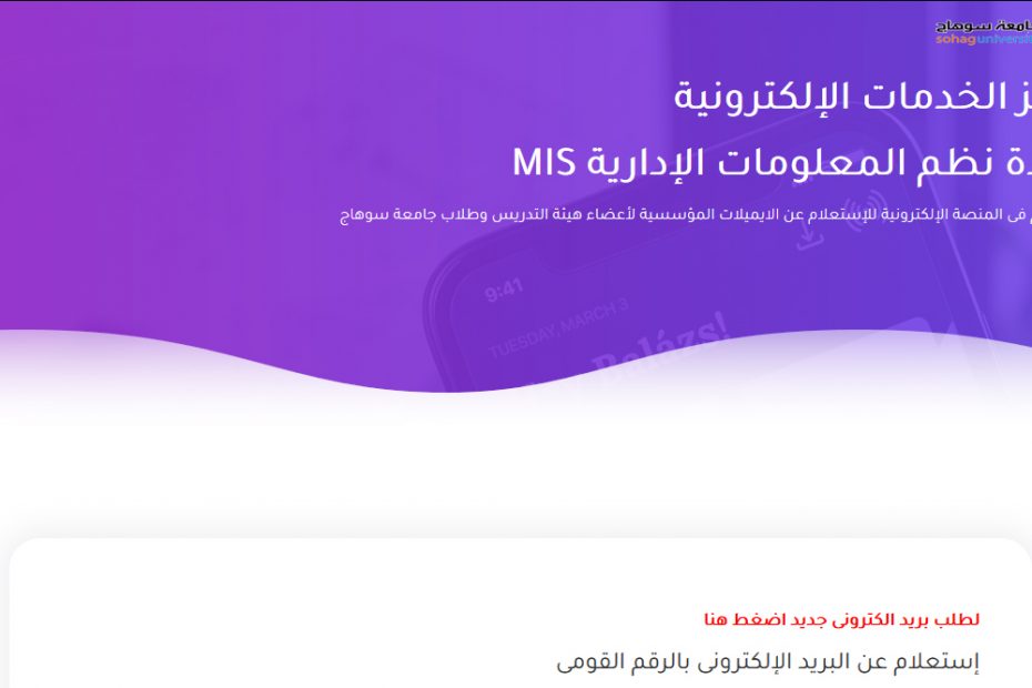 مركز الخدمات الإلكترونية وحدة نظم المعلومات الإدارية MIS مرحبا بكم فى المنصة الإلكترونية للإستعلام عن الايميلات المؤسسية لأعضاء هيئة التدريس وطلاب جامعة سوهاج . mis2.sohag-univ.edu.eg/mail